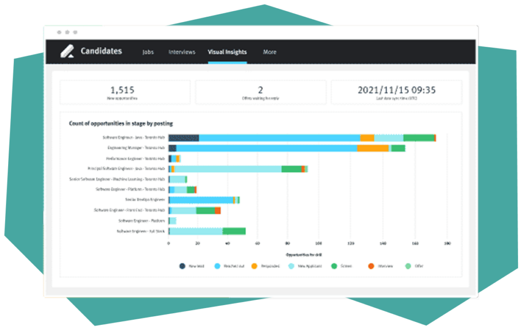 With Visual Insights, you can develop a data-driven recruiting strategy that enables you to better attract and convert top talent, make smarter hiring decisions, and improve your team’s performance.