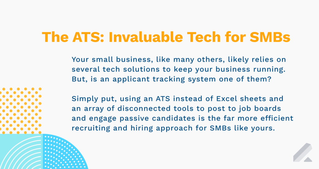 Unlike larger companies, you probably don’t have a big talent acquisition team. Instead, you likely have a small HR function, with recruiting and hiring being just one of your core tasks.